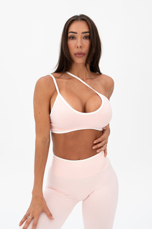 White Trim Seamless Crop Baby Pink