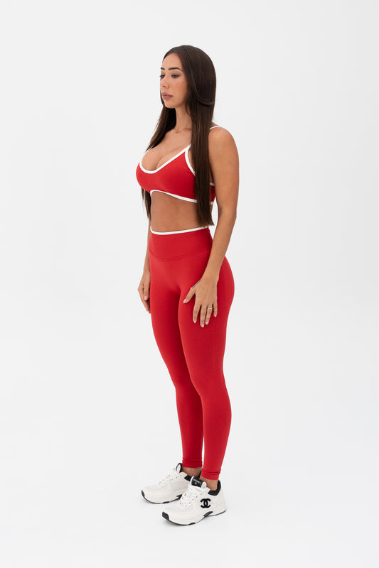 White Trim Seamless Leggings Red