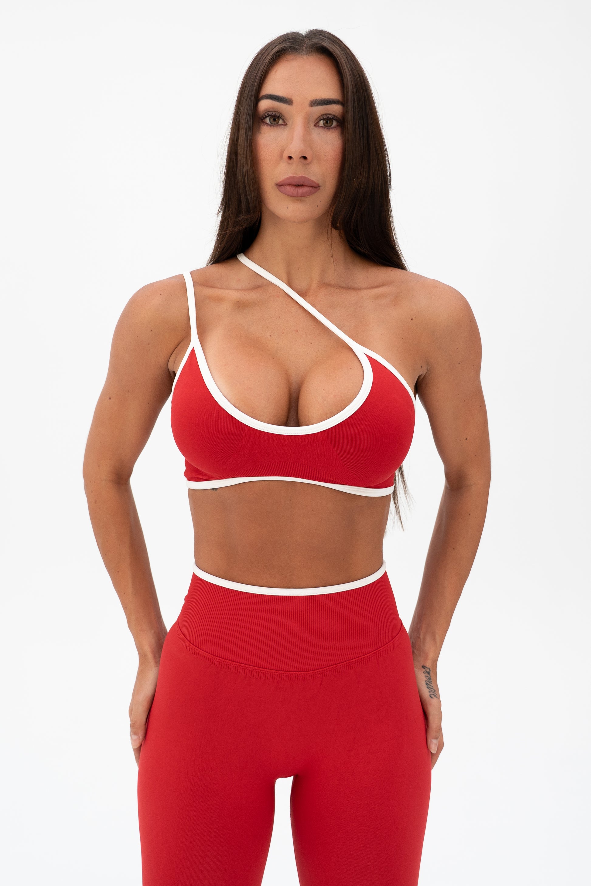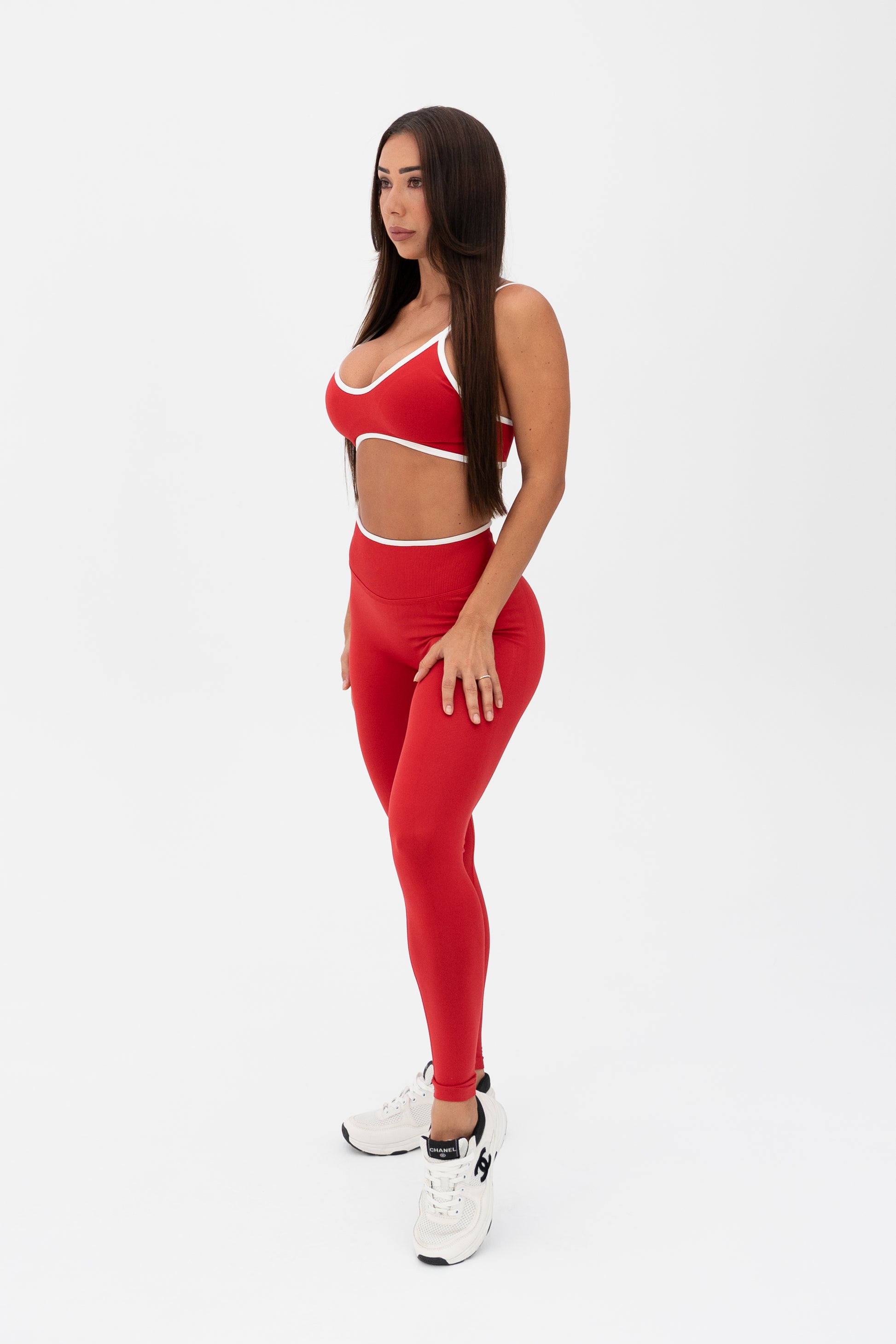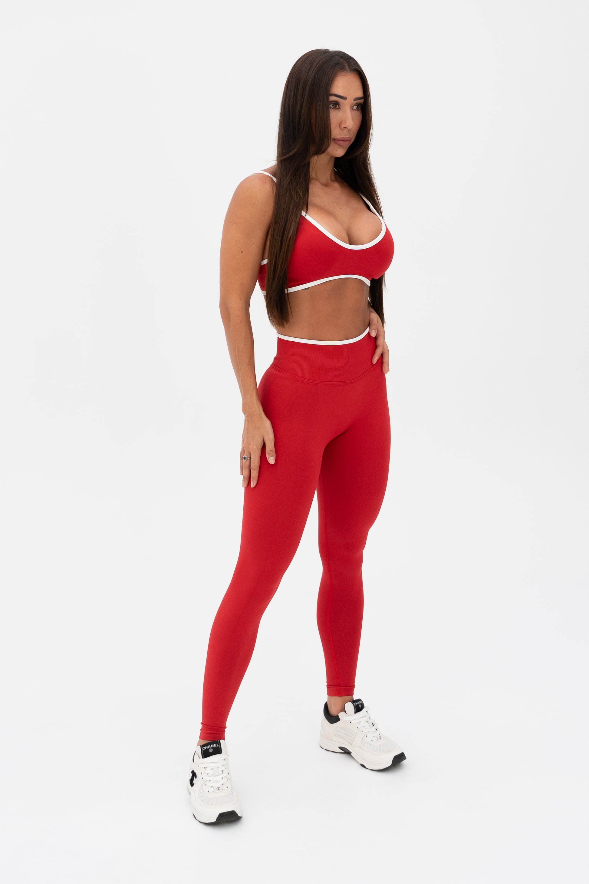 Sleek, sculpting, and effortlessly flattering. The White Trim Seamless Crop features a red tone accented with crisp white edging for a clean, athletic finish. The soft yet supportive fabric contours your shape while offering a second-skin feel, perfect for both training and lounging.